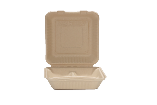 Natural Color 9"x9"x3" Clamshell food container, 3-compartment - 200/Case